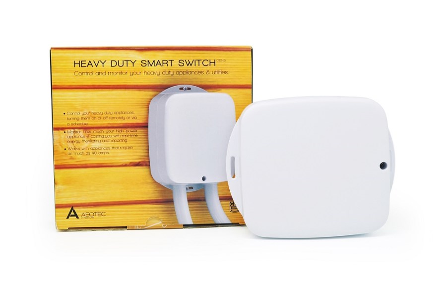 Aeon Labs Heavy Duty Smart Switch is a control and monitor device for heavy duty appliance and utilities. It can fully control your high powered appliance and services wirelessly or with an automatic schedule.You can save money immediately with both its scheduling and energy monitoring features. You’ll receive real-time reports of just how much electricity you are paying for*. You’ll then be able to using scheduling and automatic controls to reduce the money you spend on the appliances that need up to 40 amps of power.